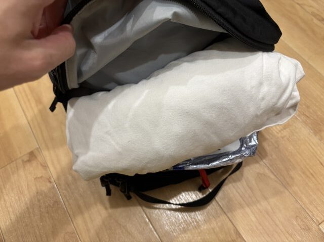 マンティス26には大きなメインポケットがあるので、こちらにゴンゴンとかさばるものを収納していきます。