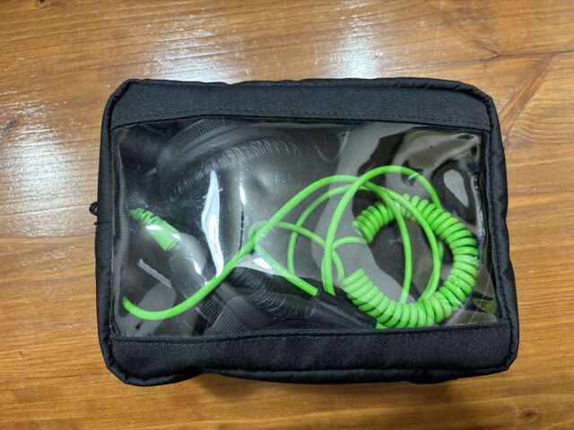 ヘッドホン、ケーブルに関しては現地調達(買うか、借りるかしてなんとかなるやつ)で、数量把握のためにポーチに格納するという感じです。